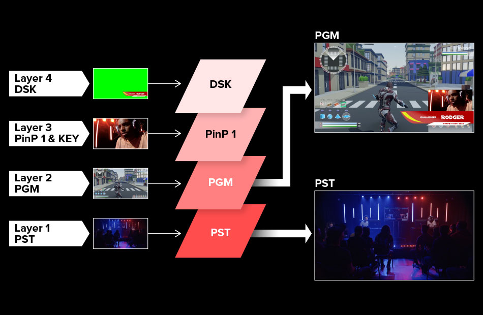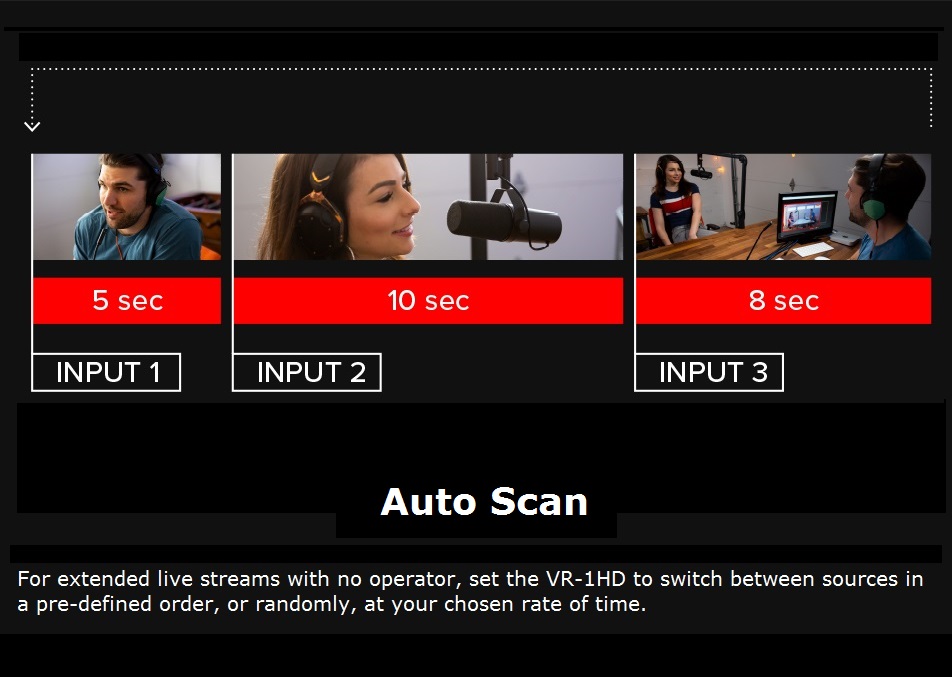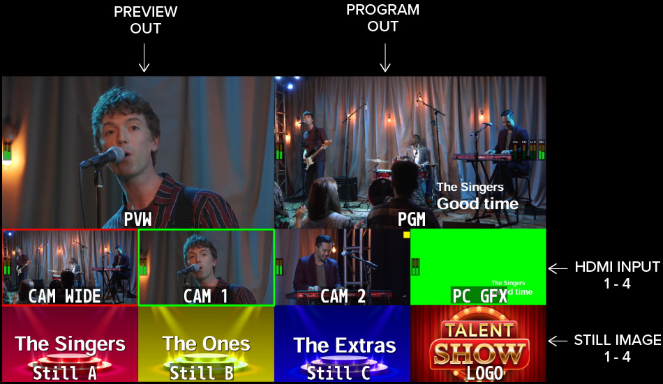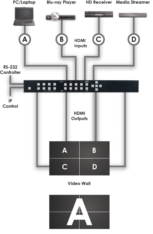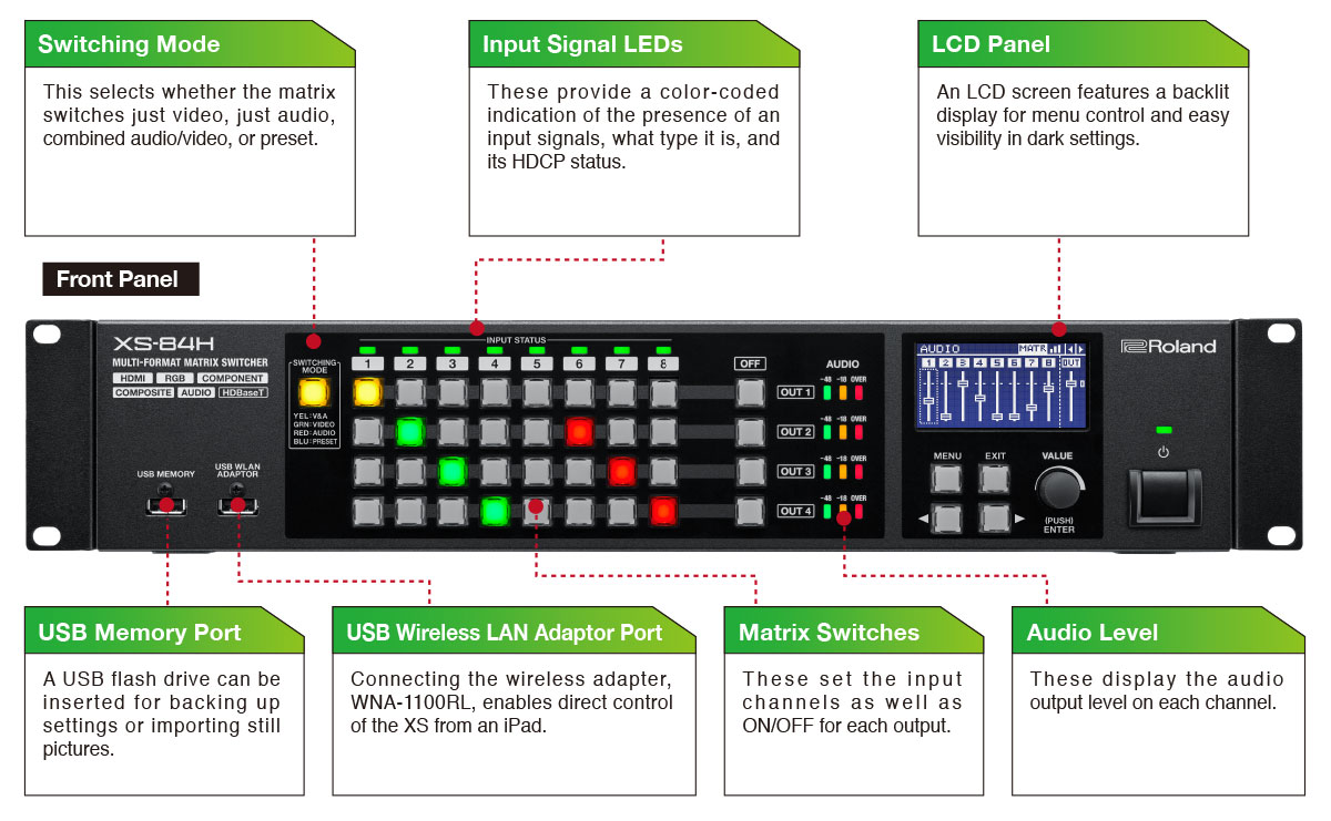 = Matrix Mode: allows switching of 4 sources to any of 4