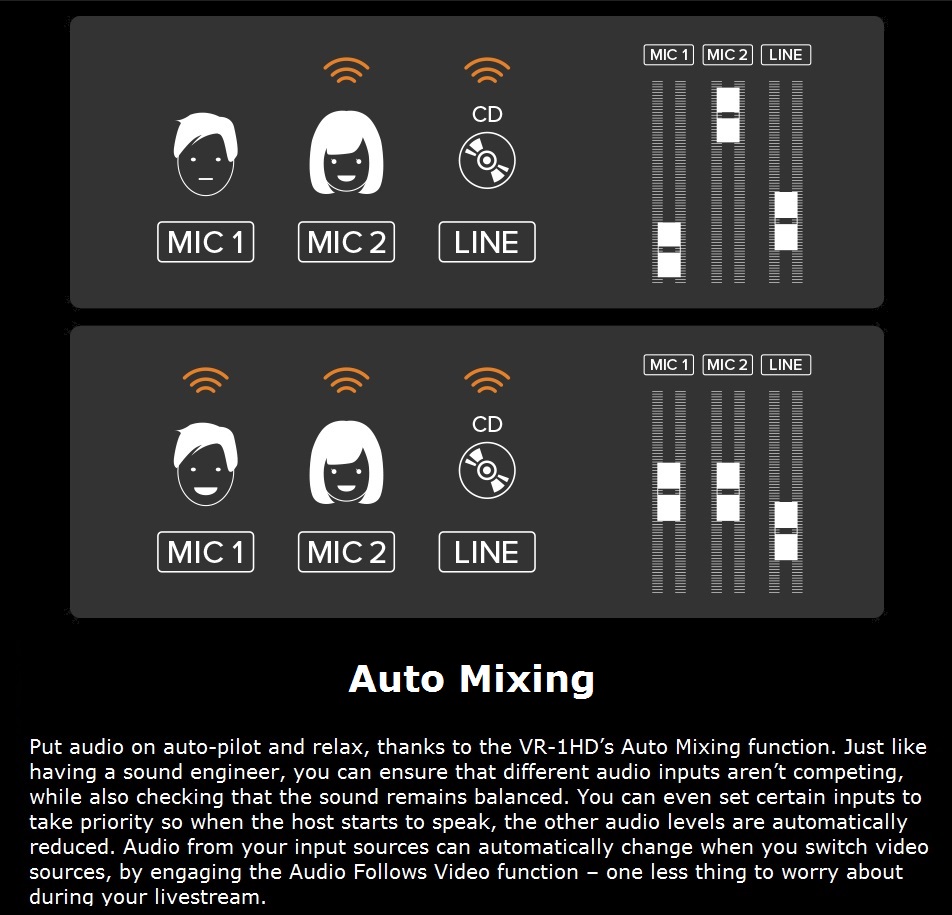 Video storage on Memory Stick, SD & SDHC card, HDD, Video Mixer, Field