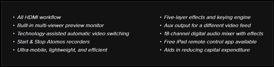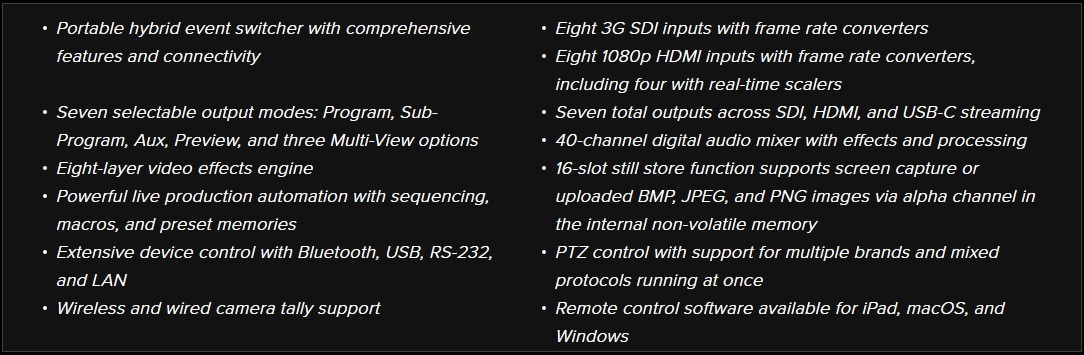 V-4, V-8, MVS-12, F-1, V-1600HD, Teradek Cube, MXO2 LE MAX, MXO2 Rack MAX